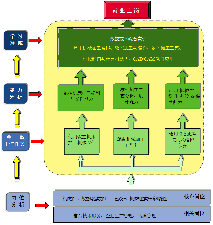 通过专业调研、教师到相关机械制造业企业参与生产实践等途径,进行广泛的数控专业人才岗位需求和能力水平的研究。分析企业生产经营活动需要,明确就业岗位,论证出典型工作任务、工作过程及岗位能力要求。