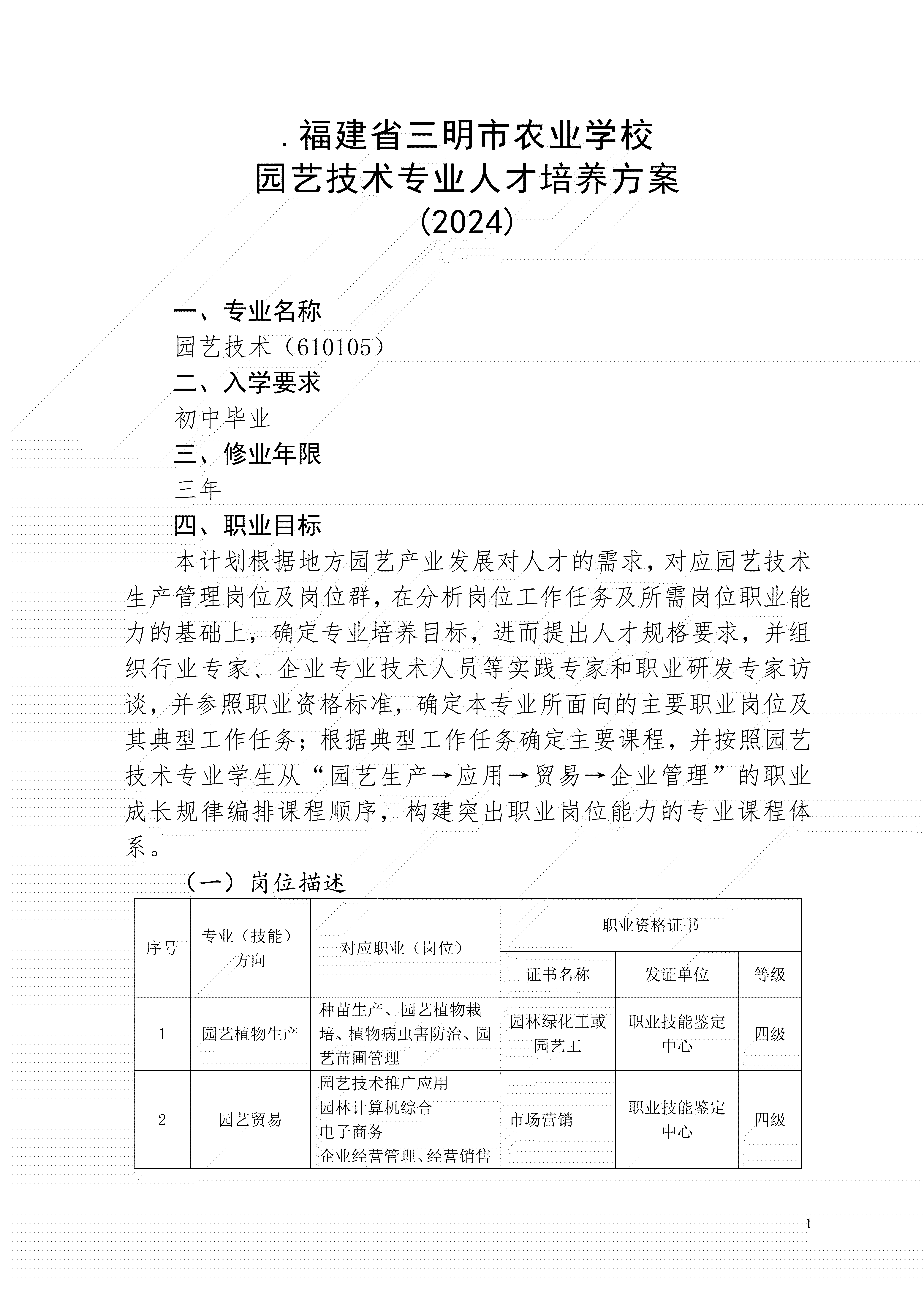 三明市农业学校园艺技术专业人才培养方案(2024)