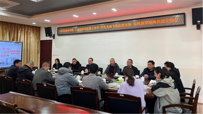 2025年1月19日,三明市农业学校、沙县区第三中学与沙县大地飞歌家庭农场召开劳动实践教学基地共建交流会,共同探讨学生农耕实践课程的开发与实施。