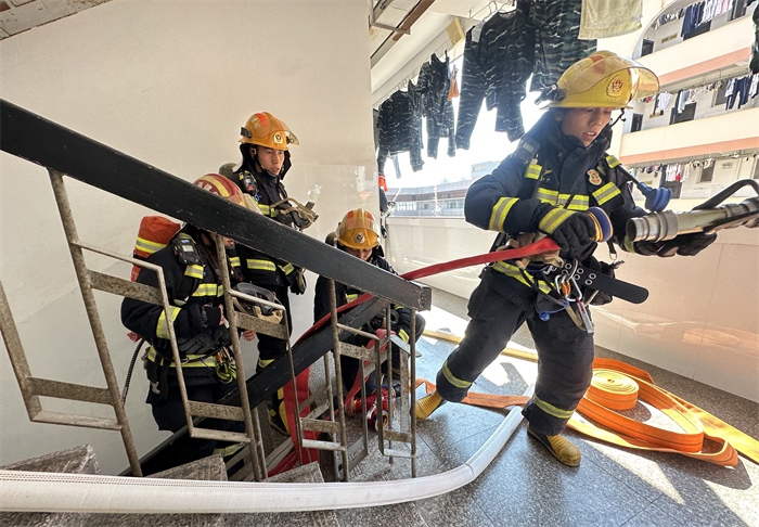 为检验校园应急预案的可行性和校园微型消防站救援灭火能力,联合检查小组开展消防应急救援演练。火情模拟为学生在宿舍区违规使用大功率电器而造成的火灾,微型消防站专职消防员抵达现场后发现火情处于发展阶段,遂拨打119火警电话,消防救援大队赶到现场进行灭火处理。